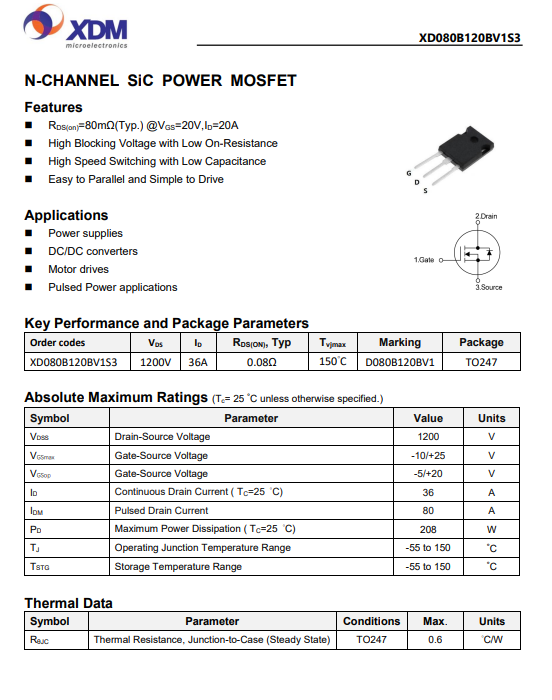 XD080B120BV1S3 80mohm 1200V TO-247 3L