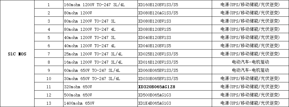 XD320B065AG1Z8  320mohm 650V 電源(UPS/移動儲能/光伏逆變)