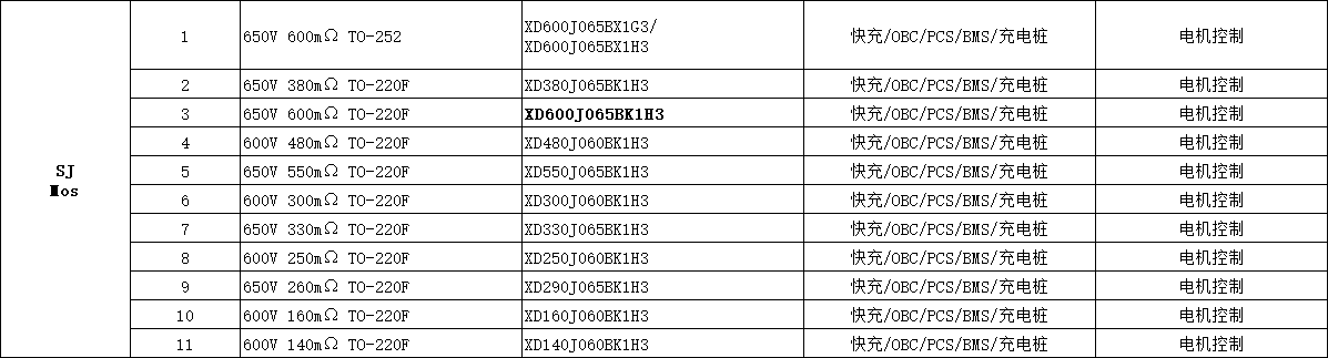 XD600J065BK1H3 芯達茂 SJ  Mos  650V 600mΩ TO-220F   快充/OBC/PCS/BMS/充電樁