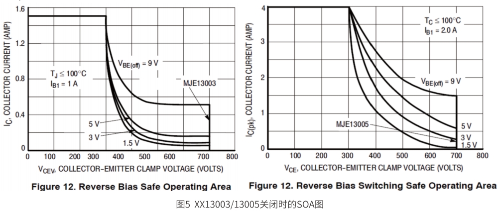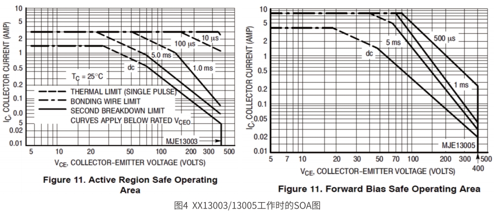 1.圖4為某款13003和13005工作在飽和區的SOA圖。