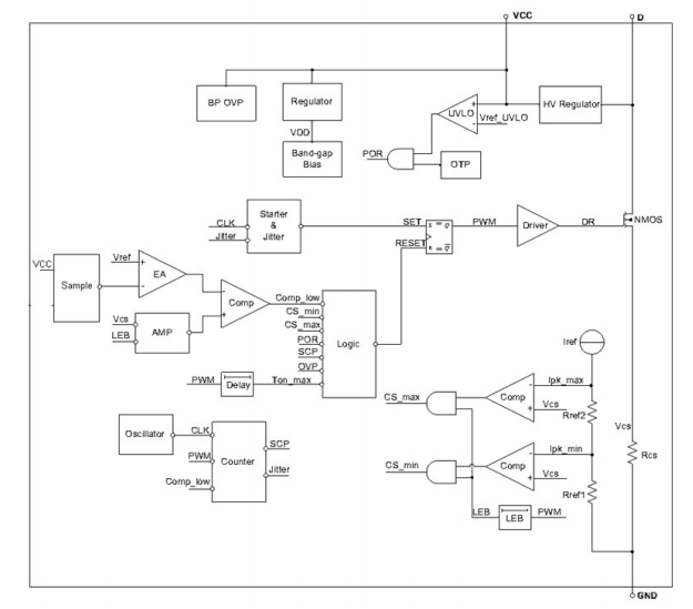 四者共用同一高壓啟動電路,典型啟動時間 50 ms,空載功耗 60 mW。差異僅在滿載效率,待機功耗無區別。