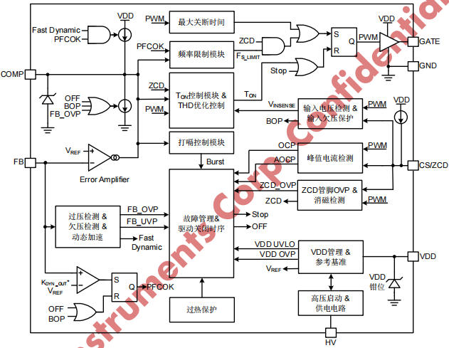 • CS/ZCD腳“一魚三吃”:電流采樣+谷底檢測+輸入欠壓,節省1顆比較器