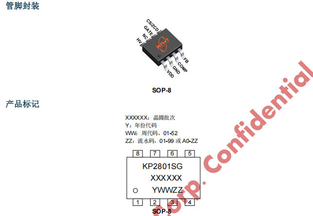 在LED驅動、USB-PD適配器、TV電源等“小體積+高功率因數”場景,傳統兩級PFC方案常因“元件多、體積大、調試難”被工程師詬病。必易推出的KP2801SGA,用一顆SOP-8封裝就把“準諧振升壓+恒壓PFC+高壓自供電+全套保護”打包完成: