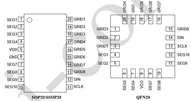 SOP20/SSOP20頂視圖(QFN僅序號差異):