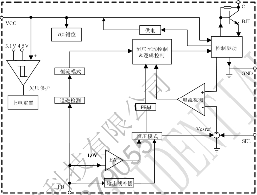 LP3717的內(nèi)部結(jié)構(gòu)框圖揭示了其自供電與恒壓恒流控制的實現(xiàn)機制: