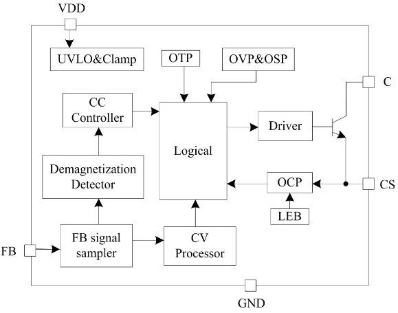 | 內置高壓功率BJT | 集電極-基極耐壓700V,集電極-發射極耐壓400V |