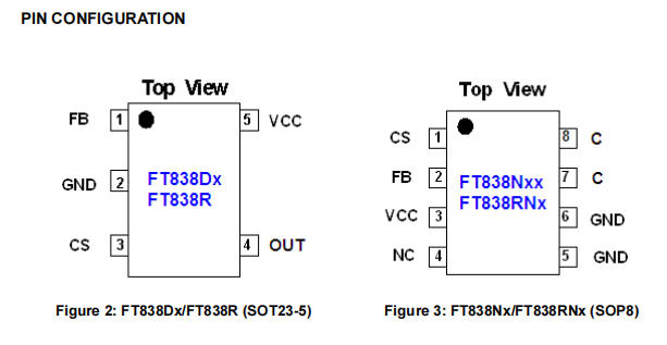 FT838NB1-RT是一款高性價比的原邊反饋電源芯片,通過內置700V功率NPN和完善的CV/CC控制,實現了: