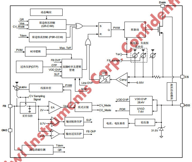 | 3 | FB | 反饋 | 輔助繞組電壓分壓輸入,用于CV/CC控制 |