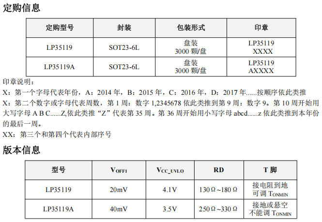 • LP35119A的關斷閾值VOFF1為40mV(LP35119為20mV)