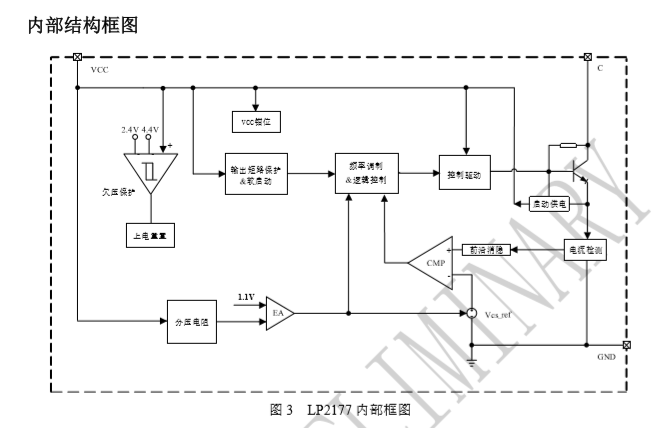 LP2177 內部集成高壓功率管,采用恒壓控制模式, 系統可工作于CCM和DCM模式。采用特有的PFM控制方式,改善音頻特性。