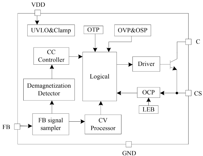 PL3379C是一款原邊控制,用于反激式開關電源的恒流恒壓調節(jié)器。其高度集成了功率開關,并通過去除光耦以及次級控制電路,在簡化充電器/適配器等傳統(tǒng)的恒流恒壓設計的同時實現了精確的電流和電壓調節(jié),
