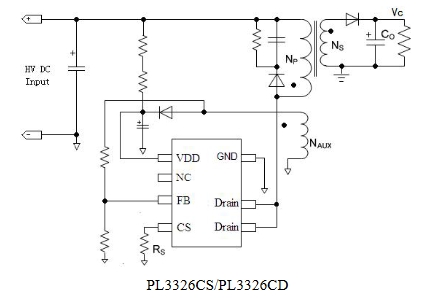 PL3326CD聚元微DIP7直插15W原邊控制AC/DC 反激式開關電源