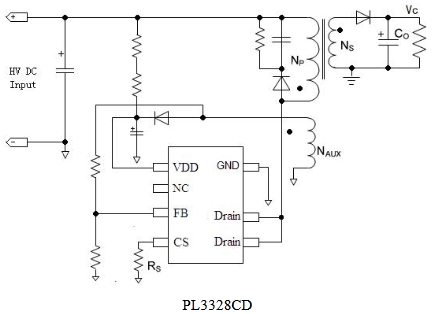 復合模式的應用使得芯片能夠?qū)崿F(xiàn)低靜態(tài)功耗、低音頻噪音、高效率。而且高集成的功率 MOSFET 能夠降低外部 PCB的面積以及系統(tǒng)的成本。PL3328C 同時具有多種保護功能:逐周期峰值電流檢測、欠壓保護、過壓保護等。
