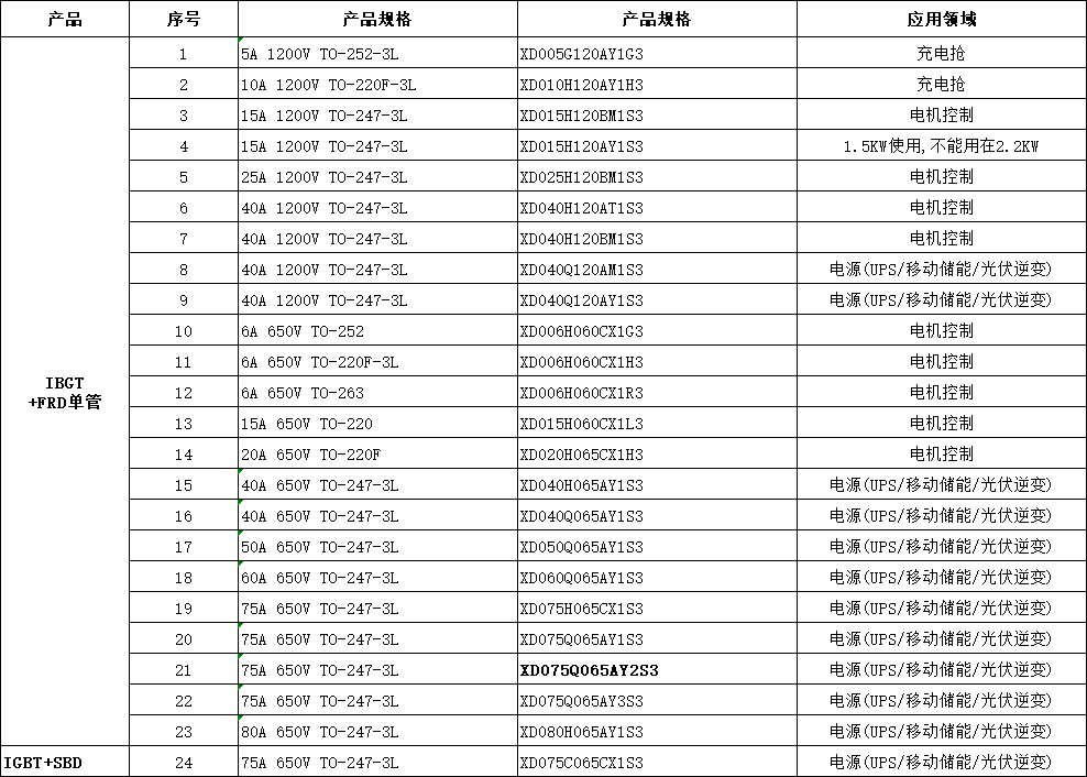 XD075Q065AY2S3 芯達茂 國產IBGT +FRD單管 75A 650V TO-247-3L 應用:電源(UPS/移動儲能/光伏逆變)